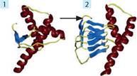 Іл. 10. Форма пріонів: 1 — нормальна форма білка; 2 — аномальна форма білка