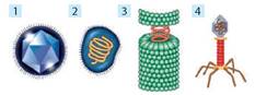 Іл. 11. Вірусні частинки: 1 — герпесу; 2 — грипу; 3 — тютюнової мозаїки; 4 — бактеріофаг