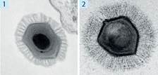 Іл. 12. Одні з найбільших вірусів: 1 — мегавірус; 2 — мімівірус