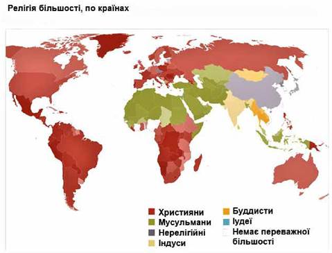 Уважно розгляньте матеріали щодо відношення до віросповідання в Україні та розподіл релігій по країнах і дайте відповіді на запитання.