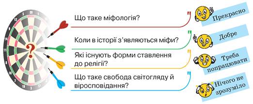 Самооцінювання. Оцініть свої успіхи в опануванні теми «Історія. Що вивчає наука «Історія»» — уявно поєднайте кожне із запитань для самоконтролю з відповідним смайликом успіху. Усно дайте відповіді на поставлені запитання.