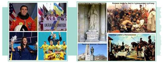 • Розгляньте колажі. Які події, на вашу думку, об’єднують Україну з іншими європейськими країнами в минулому та сьогодні.