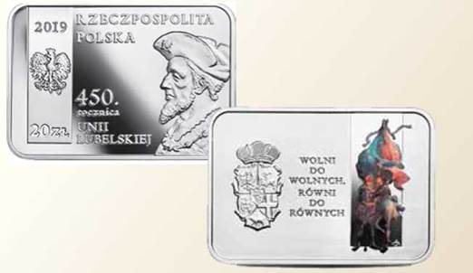 Пам’ятна срібна монета на честь 450-річчя Люблінської унії (Національний банк Польщі, 2019 р.)