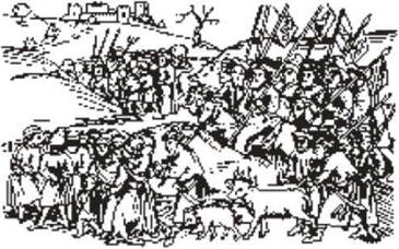 Ханські воїни виводять ясир. Гравюра з угорської хроніки. XV ст.