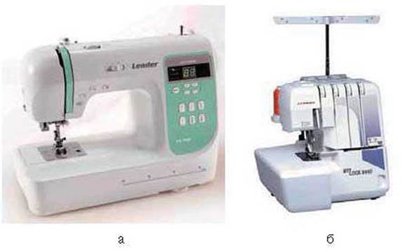 Мал. 113. Машини для пошиття індивідуального одягу: а — швейна машина; б — оверлок