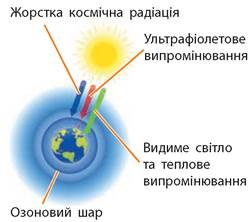 Мал. 19.2. Озоновий шар захищає всіх живих істот, які мешкають на суходолі, від шкідливого ультрафіолетового випромінювання, небезпечного для живих організмів