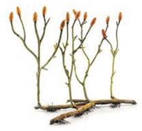 Мал. 19.3. Риніофіти (реконструкція) — найдавніша група спорових рослин, які пристосувалися до умов суходолу