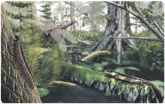 Мал. 19.4. Реконструкція екосистеми Кам'яновугільного періоду, у якій панували вищі спорові рослини
