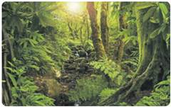 Мал. 19.5. У сучасному тропічному лісі разом існують дуже різні рослини. Серед них є різноманітні мохи, папороті, хвощі, плауни, голонасінні й покритонасінні рослини. Це ті види, які вижили й пристосувалися до змін, що відбувалися. Значно більша кількість видів зникла в процесі еволюції назавжди