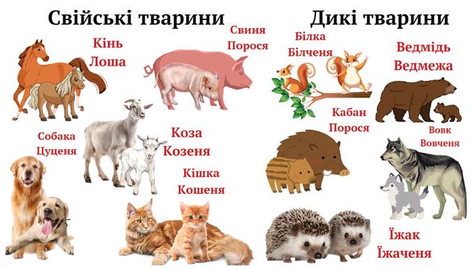 Погляньте на малюнки нижче. Яких тварин ви бачите перед собою? Як ще називають цих тварин?