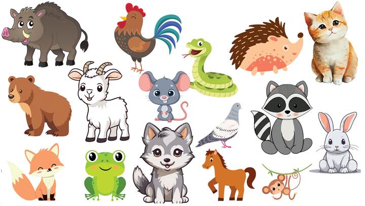 Подивіться на зображених тварин. Назвіть, які з них дикі, а які — свійські.
