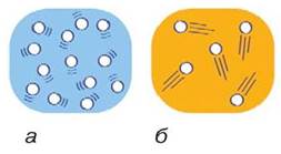 Мал. 128. Розміщення молекул газів у повітрі за різних температур