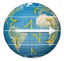 На кліматичній карті світу (шукай в атласі або в інтернеті) покажи приклади дії постійних і змінних вітрів (мусонів і місцевих). Поясни вплив сили Коріоліса на напрямки постійних вітрів у Північній і Південній півкулях.