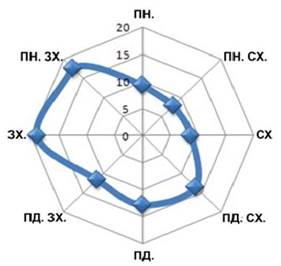 Мал. 136. Річна роза вітрів (у % у кожному напрямку) для міста Житомир