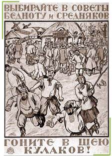 Вибирайте до ради бідноту і середняків. Женіть у шию куркулів Плакат. 1920 р.
