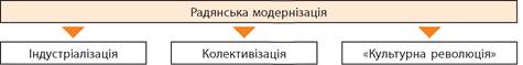 Після зміцнення своєї влади більшовики розпочали докорінну перебудову країни, яка отримала назву «радянська модернізація», або «сталінська модернізація». Модернізація була об’єктивною необхідністю, адже СРСР значно відставав від провідних країн Заходу. Основними складовими сталінської модернізації СРСР і, зокрема, України стали: форсована індустріалізація, колективізація, більшовицька «культурна революція», які впроваджувалися на тлі становлення тоталітарної системи й масових репресій.