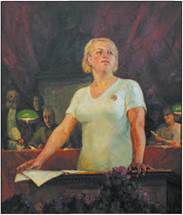 Виступ стахановки. Художниця Л. Ждановська, 1940 р.