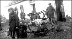 Розкуркулена сім'я біля свого будинку в селі Вдале Донецької області. 1930-ті рр.
