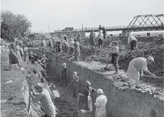 Цивільне населення на будівництві протитанкових укріплень. 1941 р.