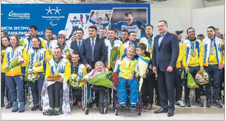 Українська паралімпійська збірна після успішного виступу на зимових Паралімпійських іграх. Київ. 2018 р. Фотограф Андрій Скатерний
