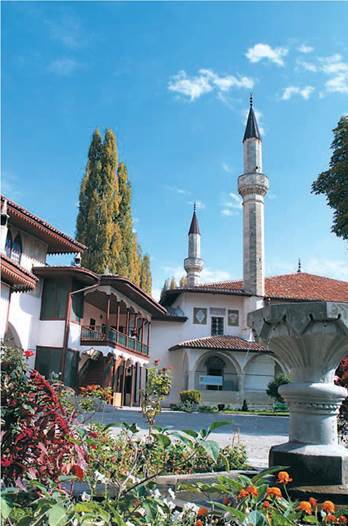 Комплекс Ханського палацу прекрасно передає атмосферу середньовічного Сходу. У Бахчисараї дуже добре помітний основний задум саду: стати подобою Раю. У XVIII ст. великі сади оточували мавзолей Діляри-Бікеч. Головною окрасою садів були 14 фонтанів. садів XVIII ст. збереглися Басейний і Гаремний. Оригінальний сад у Великому дворі, тут є басейн, що повторює своїми обрисами контур Чорного моря. У фонтанному дворику - знамениті бахчисарайські фонтани. Вода на Сході дефіцитна. Тому вона у фонтанах тече повільно. «Золотий фонтан» призначався для ритуальних обмивань. А Сельсебіль, священний фонтан, відомий як «Фонтан сліз», - став легендарним завдяки поемі О. Пушкіна «Бахчисарайський фонтан». Він був створений майстром Омаром на згадку про Діляру, передчасно загиблу кохану дружину хана Крим-Гірея. На «Фонтані сліз» напис: «Прийди! Пий воду найчистішу, вона приносить зцілення». За легендою, під ім’ям Діляри-Бікеч - Прекрасної Князівни - ховалася викрадена у Польщі татарами Марія Потоцька. Її палко полюбив хан Крим-Гірей. Засліплена ревнощами дружина хана - Зарема - вбила її, за що була втоплена в басейні. «Фонтан сліз» став не тільки душею Бахчисарайського палацу, а й символом вічної теми підступництва й кохання.