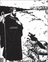 Олена Кульчицька. Пастир і вовки. 1916. Гравюра, присвячена митрополиту Андрею Шептицькому