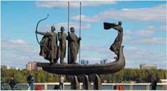 Монумент, споруджений у 1982 р. на ознаменування 1500-річчя Києва, розташований на набережній Дніпра, неподалік мосту імені Патона. Композицію (скульптор В. З. Бородай, архітектор Н. М. Фещенко) виконано з кованої міді у вигляді плоского човна. У човні - фігури легендарних засновників Києва - братів Кия, Щека та Хорива і їхньої сестри Либеді.