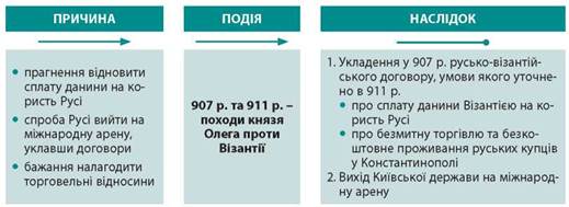 • Становлення України-Русі завершилося за князювання Олега, який утвердив правління династії Рюриковичів у Києві, а також уклав першу відому русько-візантійську угоду.