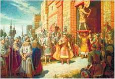 Олег прибиває свій щит на воротах Константинополя. Художник М. Бодаревський