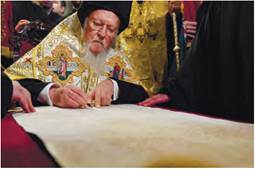 Підписання Вселенським патріархом Варфоломієм Томосу про автокефалію Православної церкви України. Фанар, храм Св. Георгія