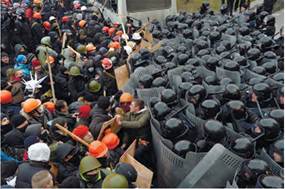 Десятки тисяч протестувальників, які користувалися своїм конституційним правом на проведення мітингів, вуличних походів і демонстрацій, раптом опинилися перед загрозою кримінального переслідування. Тим часом лідери опозиції на черговому вічі 19 січня 2014 р. запропонували абстрактні, неузгоджені навіть між ними самими плани наступних дій. Проте Майдан був виразником волі суспільства, діяв поза політичними гаслами й без політичних лідерів. Протестувальники вирішили йти до Верховної Ради, щоб змусити народних депутатів скасувати «диктаторські закони».