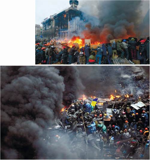 • Проаналізуйте візуальні джерела. Які драматичні моменти Революції Гідності вони засвідчують? У чому героїзм протестувальників? У чому, на вашу думку, полягав драматизм ситуації? Які емоції ви відчуваєте, розглядаючи фото?