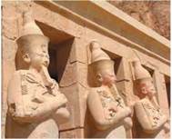 Статуї Хатшепсут перед храмом в Дейр ель-Бахрі (сучасний вигляд)