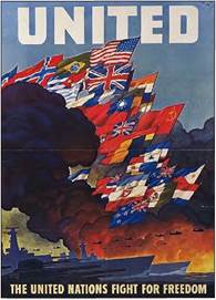 Американський плакат, присвячений підписанню Декларації Об'єднаних Націй у 1942 р. (напис: «Об'єднані нації борються за свободу»)