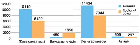 Співвідношення сил між Антантою і Троїстим союзом на початку війни