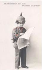 • Розгляньте німецьку листівку. Як Ви думаєте, напис на ній іронічно натякає на особливості італійського характеру (мінливий, як і погода) чи показує ставлення до надійності Італії як союзника? На чому, на Ваш погляд, хотів наголосити художник, одягнувши в німецьку військову форму дитину?