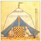 Християнин та мусульманин грають у шахи. Середньовічна мініатюра