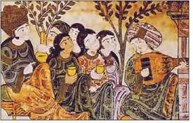 Видатний музикант Зірьяб при кордовському дворі. Арабська мініатюра