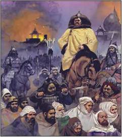 Далеко на схід від Європи, у степах на північ від Китаю, мешкали племена кочовиків-монголів. Європейці часто називали монголів «татарами», за назвою одного з племен, яке підкорили монголи. На початку XIII ст. монгольські племена об’єднав під своєю владою правитель на ім’я Темуджин (1155-1227). Монголи проголосили його Чингісханом — «великим ханом».