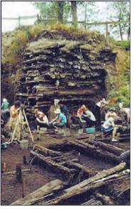 На задньому плані — п’ятсотрічний зріз настилів новгородської вулиці з X по XV ст.