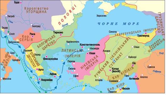 На завойованих землях хрестоносці заснували власну державу — Латинську імперію (інша назва Латинська Романів), якою правили більш ніж 50 років. Але вони не змогли підкорити всі візантійські володіння — тут утворилося три держави, які вважалися наступницями імперії — Епірське царство, Трапезундська імперія та Нікейська імперія.