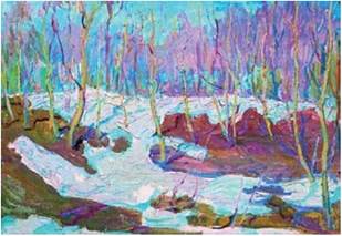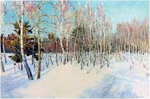 І. Жиленко вдалося побачити різні відтінки в такому звичному білому снігу. Завдяки поетесі подивитися на сніг якось інакше вдалося й тобі. Зверни увагу на зимові пейзажі, створені українським художником Миколою Глущенком. На картинах ти помітиш тонке відчуття художником декоративної виразності кольору.