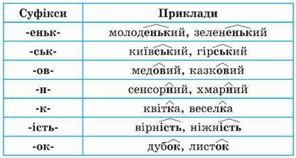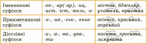 ПРИГАДАЙМО. Які суфікси ви знаєте?