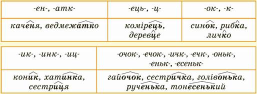 II. Знайдіть іменники, яким суфікси надають зменшувально-пестливого відтінку. З якою метою ці слова використано в тексті?