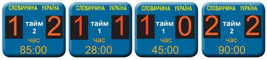 6. На основі інформації, отриманої з тексту онлайн-трансляції футбольного матчу, визначте, які ДВА зображення суперечать прочитаному.