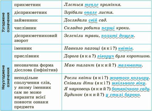 Про члени речення, що означають ознаку предмета, та способи їх вираження