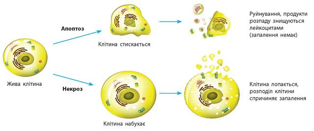 Клітини функціонують певний період часу, після чого вони старіють і гинуть. Загибель клітин відбувається двома способами — шляхом некрозу і шляхом апоптозу (мал. 85.1).