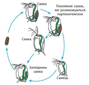 Мал. 95.1. Партеногенез у життєвому циклі дафній