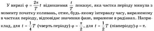 Фаза коливань. Гармонічні коливання характеризуються ще однією важливою величиною — фазою коливань. У виведенні основного рівняння гармонічних коливань, ми отримали вираз: