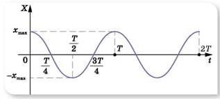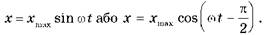 Отже, зміщення (координата) тіла, що здійснює механічні гармонічні коливання, із часом змінюється за законом х = хmax cos ωt, якщо в початковий момент (t = 0) коливне тіло займало крайнє положення; або x = хmax sin ωt, якщо в момент початку відліку тіло перебувало в положенні рівноваги.